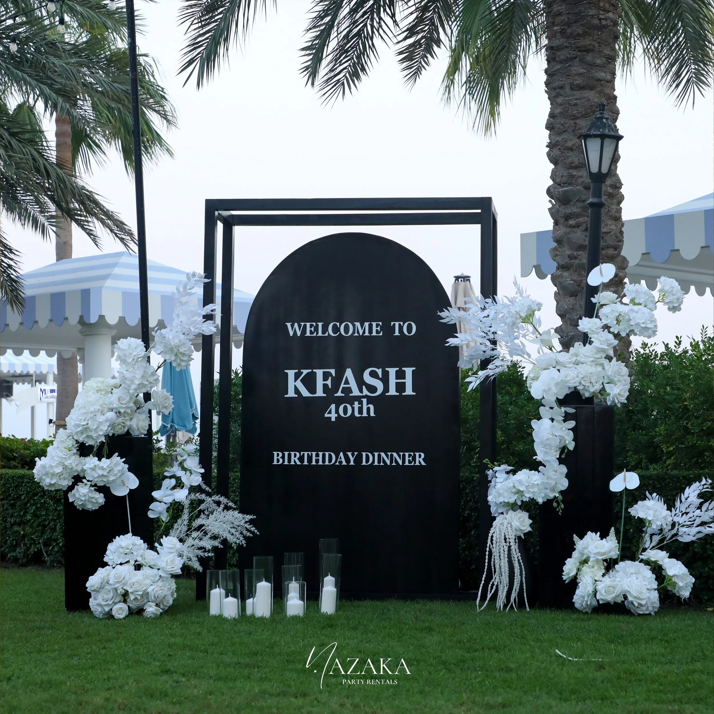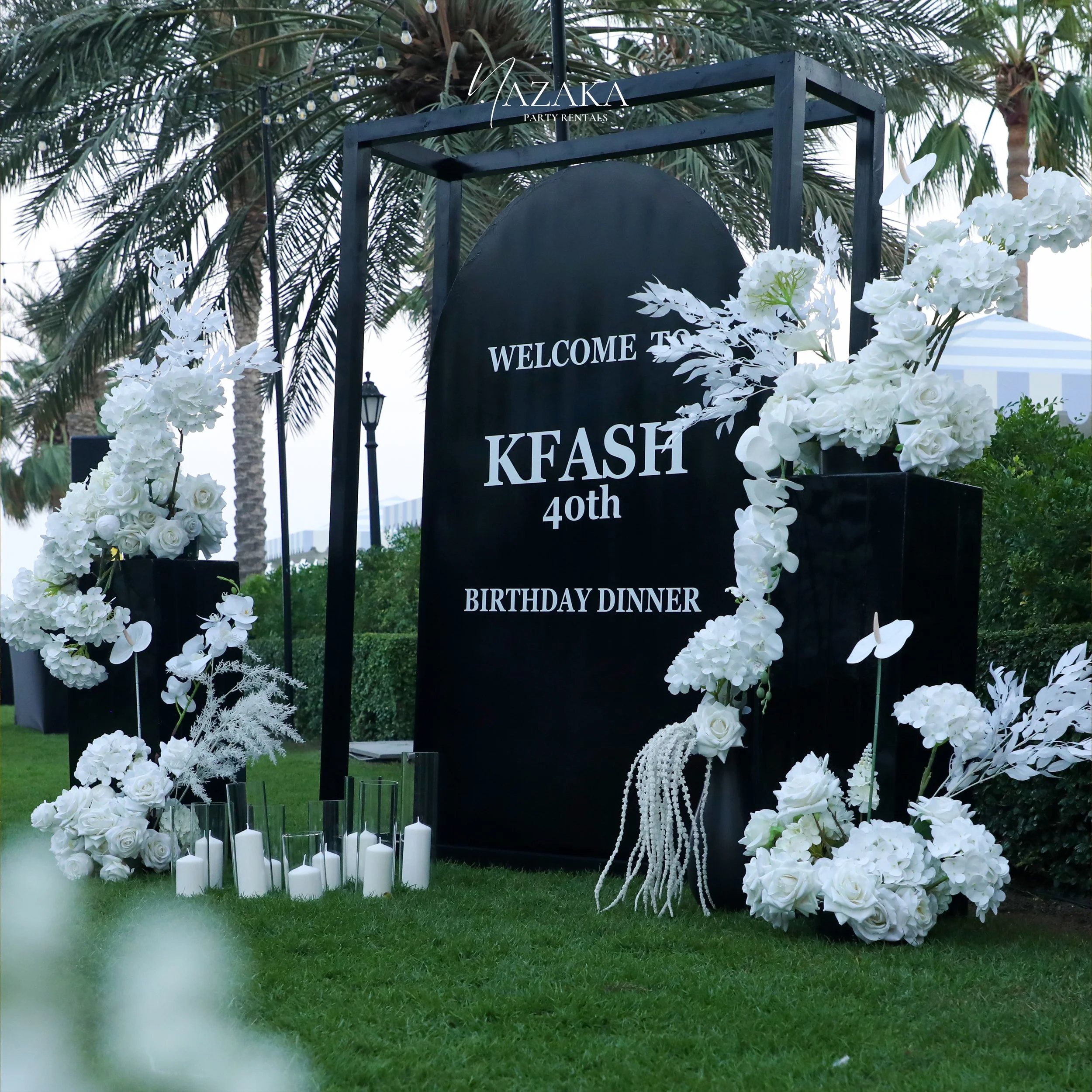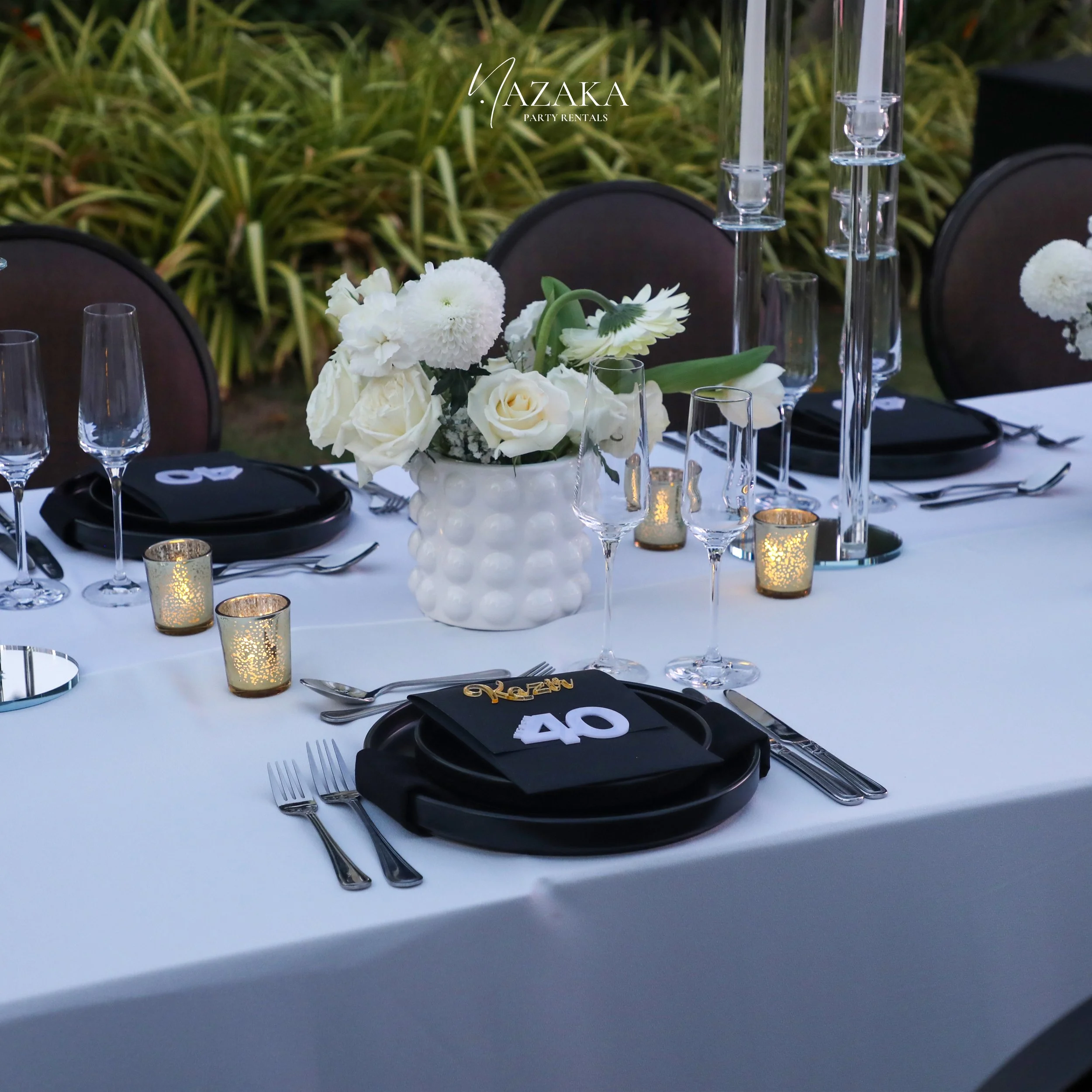 An elegant black-and-white soirée, where modern minimalism met timeless beauty. Crisp white florals, sleek black accents, and candlelight created a chic and intimate setting for an unforgettable 40th birthday celebration.