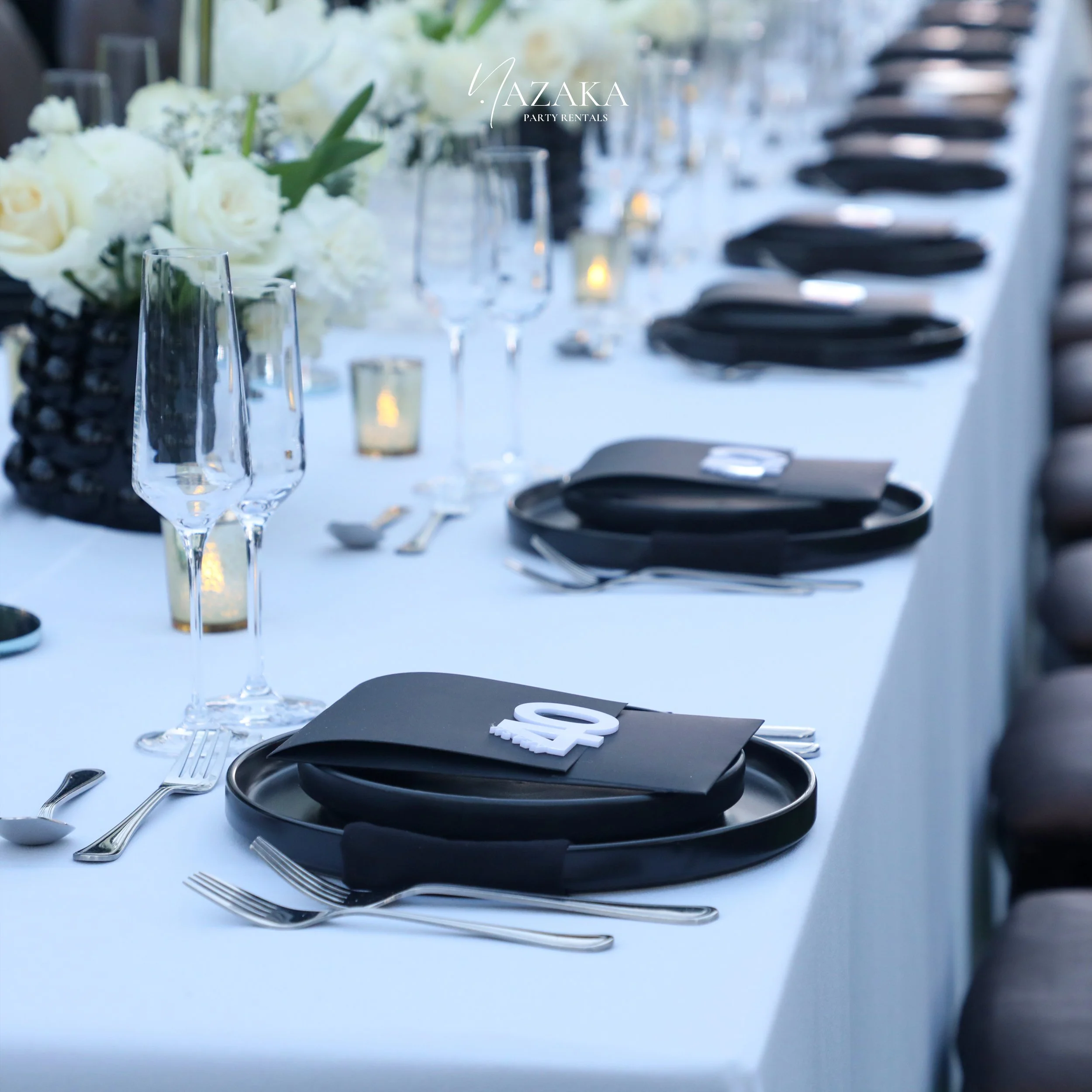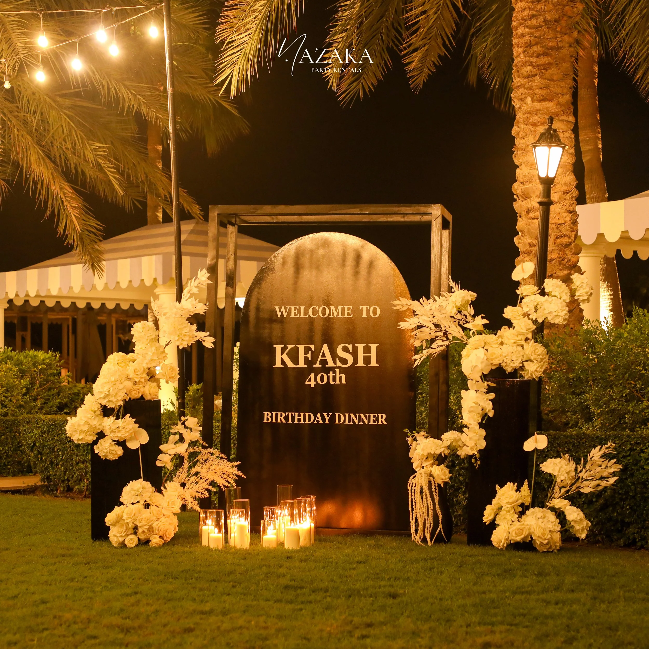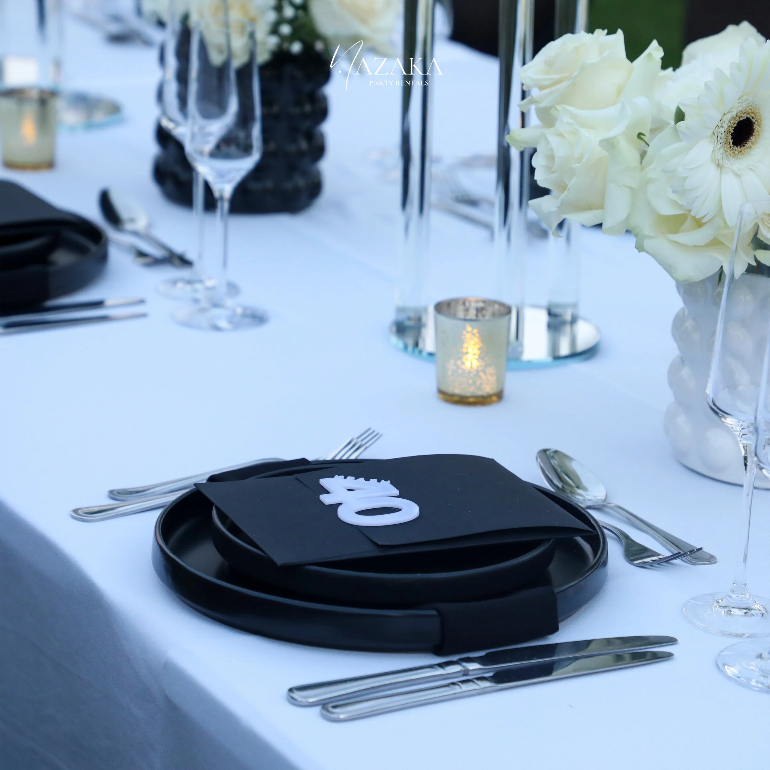 An elegant black-and-white soirée, where modern minimalism met timeless beauty. Crisp white florals, sleek black accents, and candlelight created a chic and intimate setting for an unforgettable 40th birthday celebration.