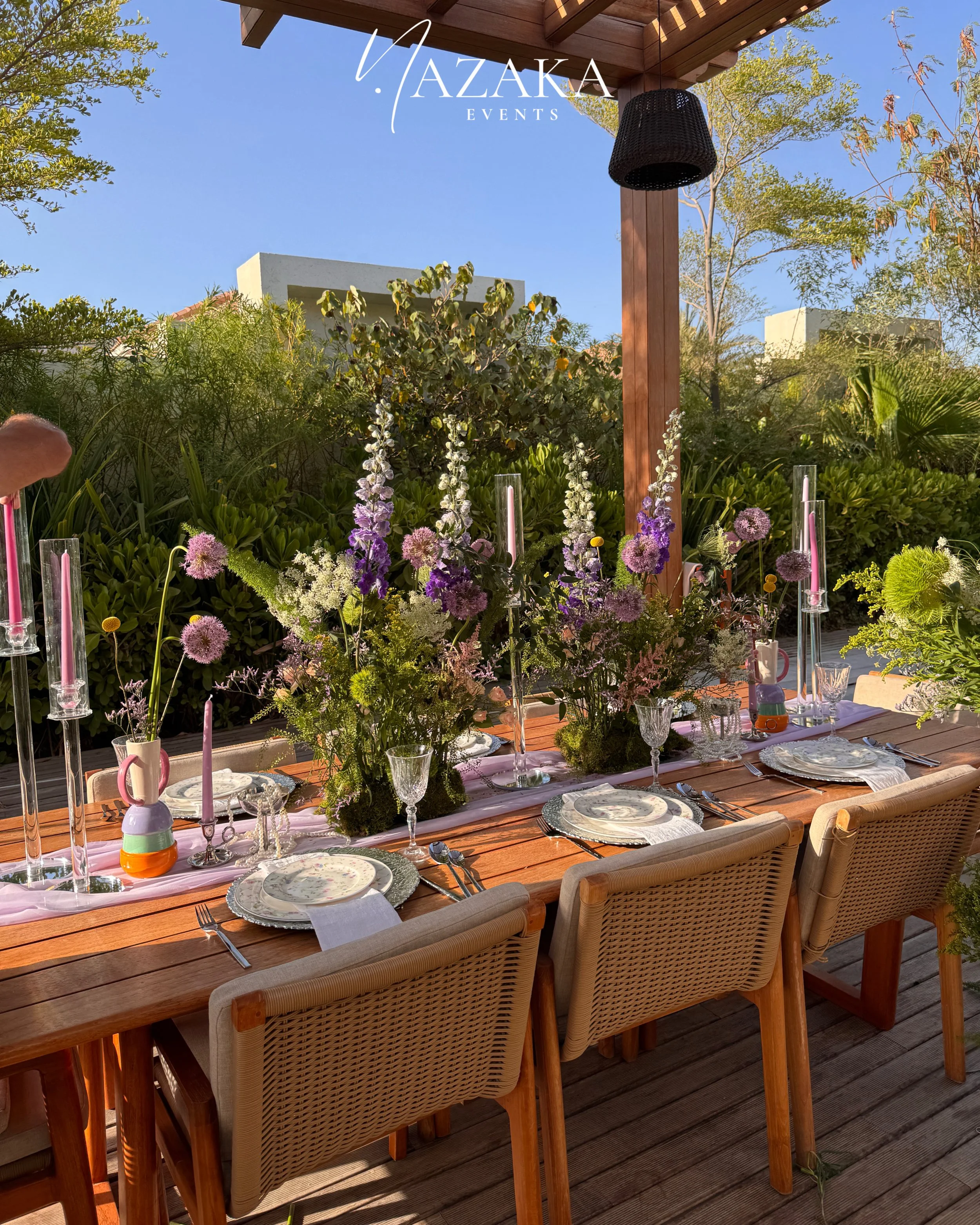 A whimsical garden-inspired bridal shower filled with blooming elegance. Layers of lilac and blush florals, delicate crystal glassware, and soft candlelight created a romantic, airy setting for a day of love and laughter.